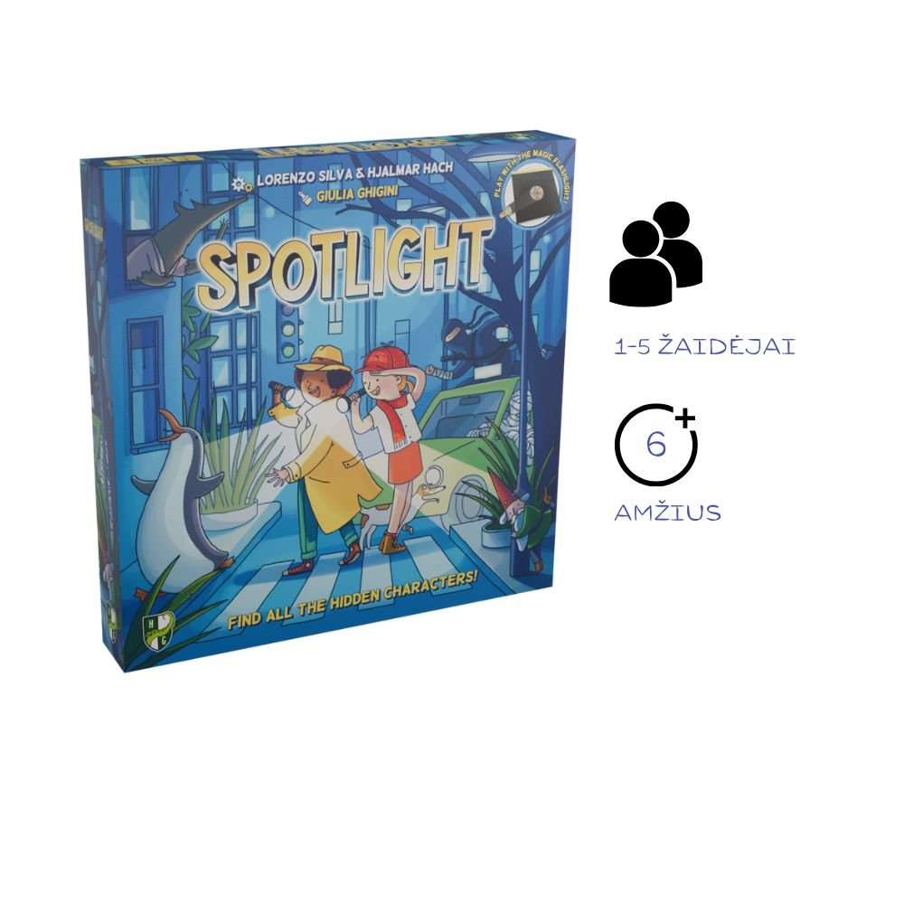 Spotlight žaidime jūsų tikslas surasti kuo daugiau personažų, kad galėtumėte perkelti savo figūrėlę į priekį ir taip pasiekti finišą. Bet saugokitės, nes Mėnulio figūrėlė lips jums ant kulnų. Jei jis jus pasivys, žaidimas baigtas!