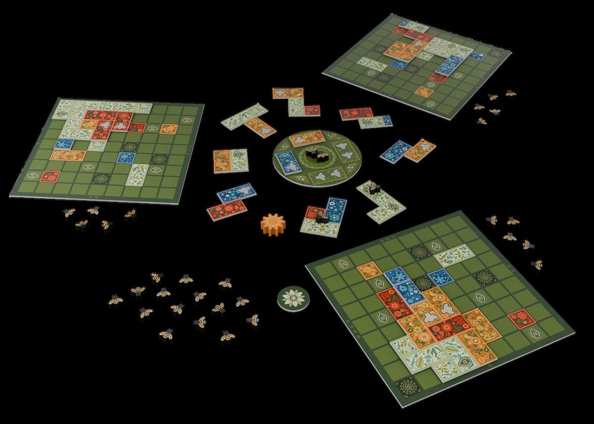 Pabaigoje skaičiuokite vertingiausią kiekvienos spalvos plotą: raudoni, geltoni ir mėlyni plotai verti tiek taškų, kiek turi langelių, padaugintų iš tame plote esančių bičių skaičiaus. Baltų plotų vertė – po 1 tašką už kiekvieną langelį. Papildomai gaunate po 5 taškus už kiekvieną užpildytą eilutę ir/arba stulpelį savo Sodo lentoje.